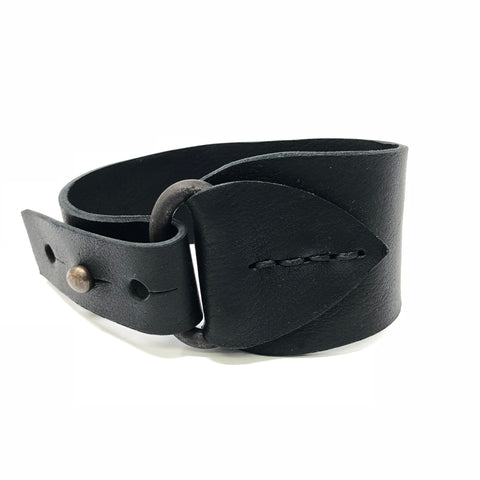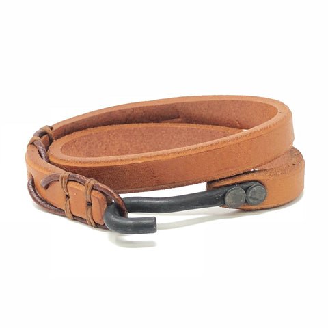JFBRA-Boa-Bull-Blk-Sil-SmMINI SNAKE unisex triple wrap bracelet, made from 100% vegetable tanned Italian bull leather with hand-forged 100% solid brass buckle closure. Comes in two sizes Small or Large and is adjustable. Small size fits most women, Large size fits most men.